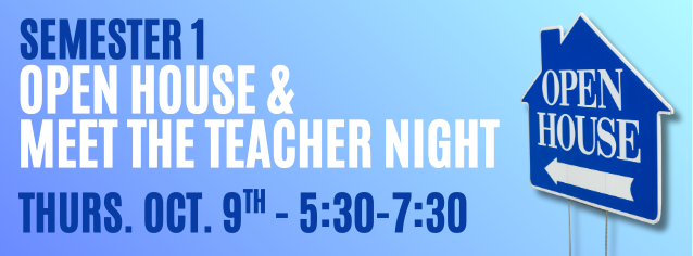 Semester 1 Open House/Meet the Teacher Night – Thursday, Oct. 9th