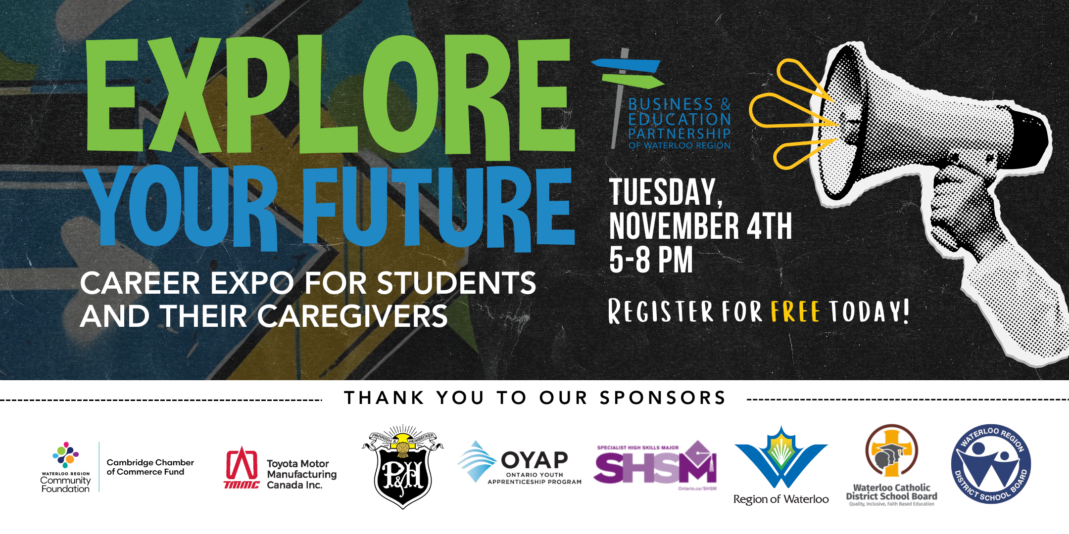 The Business & Education Partnership of Waterloo Region is excited to announce that Explore Your Future is returning this fall on Tuesday November 4th at Tapestry Hall in Cambridge.