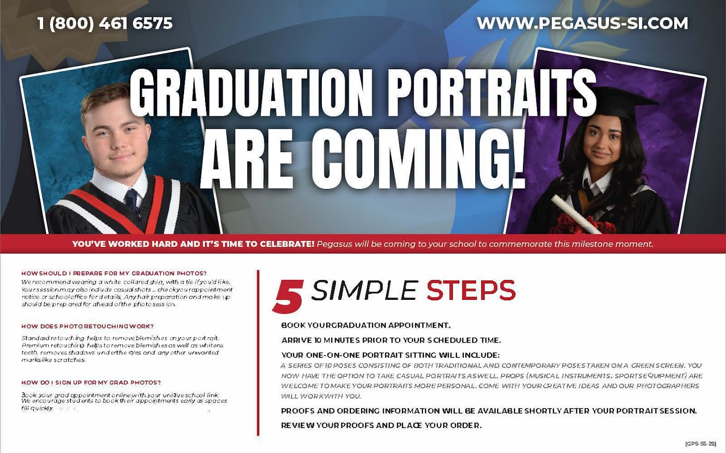 Grad photo bookings have opened again. Graduates can book appointments for their Grad photos starting on Tuesday February 17th using the link below. The link below includes all the details including the photographer’s location, what to wear and what to expect. Please check back regularly as more time slots may be added if needed.